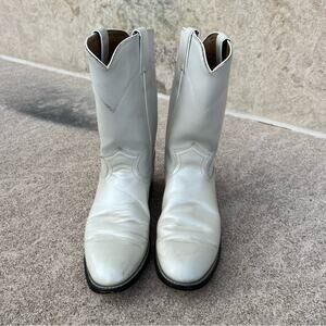 Vintage 90s Justin Roper Boots Pearl White Pull On Cowgirl Western