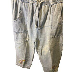 Vintage 90s K.T. Sport Keneth too Light Wash Denim Embroidered Capri Pants SZ MP