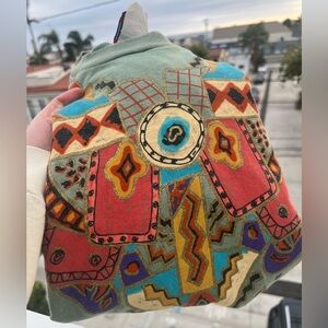 Style: Vintage 90s Glitter Embellished Hand-painted Aztec Southwestern Rare California