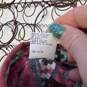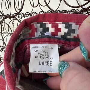 Vintage 90s Karman Aztec Maroon Stripe Southwestern Long Sleeve Button Up Shirt