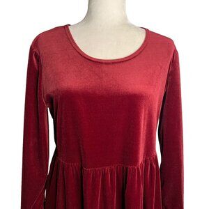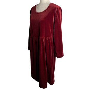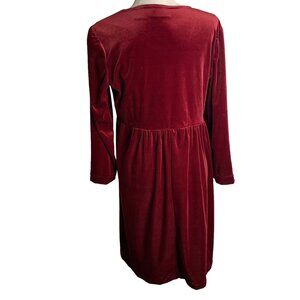 Vintage 90s Kathie Lee Velvet Dress 10 Maroon Red Long Sleeve Elastic Waist