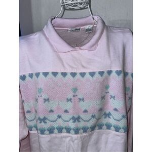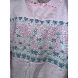 Vintage 90s Kawaii Lauren Brooke Collared Sweatshirt Pastels Duck hearts Geese Sz large