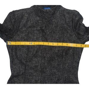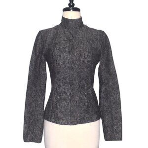 Great denim blazer from Kenzo! Herringbone design. Snaps at center front. Pockets at sides of front. Long sleeves. Labeled size 36. Measures like an XS. Bust approx. 33, waist approx. 28, length approx. 22 inches. Small barcode sticker inside from wardrobe department. Fabric content label shows fading. The two snaps at top of neck don't stay shut, seems like they are meant to stay open due to collar style. Otherwise great condition.