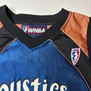 Vintage 90s Kids Girls Washington Mystics Basketball Jersey WNBA size M. Says “BLAIR” #1 on the back. Tag says: M (10/12) Youth / 100% polyester / Made in Canada / RN 10085 / Designed and tailored by the WNBA. Some crackling of the white paint on the lettering.