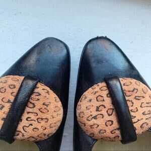 Vintage 90s Kitten Heels | Black Leather Leopard Medallion | Size 8.5