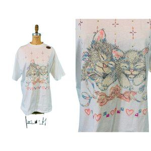 Vintage 90s Kitten Tee Womens XL DEADSTOCK Diamond Dust Graphic T Shirt
