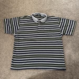 This Vintage 90s Knights-Bridge Polo Shirt XL 2-Pack is a stylish and classic addition to any man's wardrobe. Made of a comfortable blend of polyester and cotton, these collared polo shirts feature a button closure and a point collar style. The blue color, striped pattern, and limited edition design give off a retro 90s vibe, perfect for casual occasions. With features like contrasting trim, preshrunk fabric, and a single stitch construction, these polo shirts are versatile and suitable for all seasons. Whether you're hitting the golf course or just running errands, these shirts are sure to make a statement with their designer and preppy style.