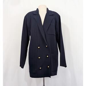 Vintage 90s Knit Jacket Blue Double Breast Oversize Misses Size M New