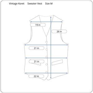 This is a lightly worn vintage Women's Koret Acrylic/Mohair Blend Zip-Up Sweater Vest in a Size Medium. This vest is in excellent pre-owned condition with very little wear, no stains, and no damage. The vest is dark brown with a multicolor fair isle pattern on the front. The acrylic/mohair knit is lightweight and fuzzy (like animal hair). I encourage you to enlarge the photos to view small details and to review the measurements on photo #8 to determine fit. If you have any questions about this item, please ask!