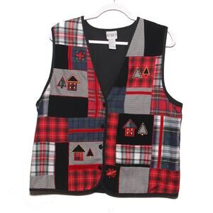 Vintage 90s Koret Holiday Patchwork Christmas Vest Size Large