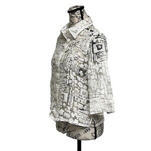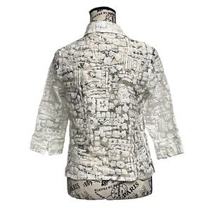 Vintage 90s Koret Petite Ivory Sheer Mesh Button Up Blouse Coastal Preppy SP