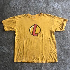 Mustard yellow / gold shirt with the orange Lunchables logos on the front and sleeve