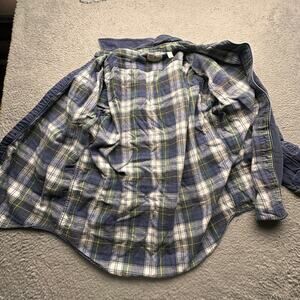 Vintage 90s LL Bean Flannel Lined Chambray Button Long Sleeve Shirt Mens Large