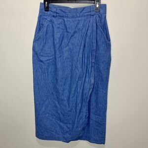 Vintage denim wrap skirt from LL Bean. MIDI length with pockets. Such a great basic for so many different aesthetics. Length provides excellent modest coverage.