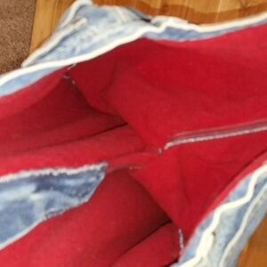 tag size 18, measurements shown. cotton denim jeans lined with a red soft, flannel-esque material. in excellent pre-loved condition. no damage to note. gs1002jnal0025