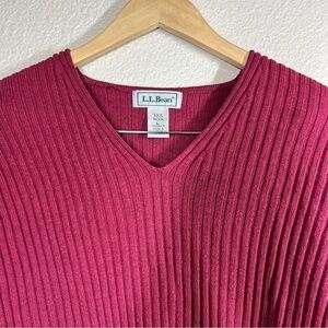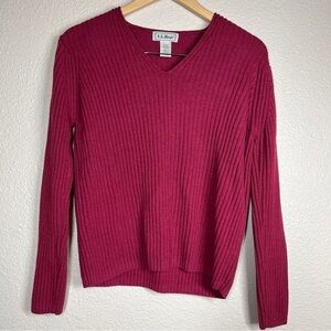 Vintage 90’s LL Bean Sweater 100% Wool V-Neck Red Ribbed Women’s Size Large.