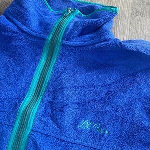 Vintage 90s LL Bean Women’s Blue Green Full Zip Fleece Jacket Script Logo Sz M