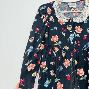 Vintage 90s Lace Collared Floral Cottagecore Mini Dress Retro Feminine Belted