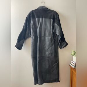 Vintage 90s Ladies Black Leather Trench Coat Full Length Long Large 80s Mob Wife