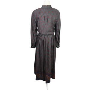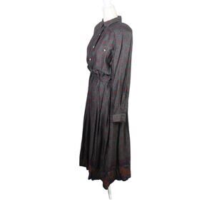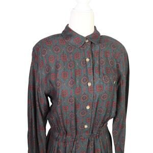 Vintage 90s Lands' End Dark Green and Red Scarf Print Maxi Shirt Dress 6