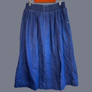 Vintage 90s Lands’ End Denim Maxi Pull On Skirt with Pockets
