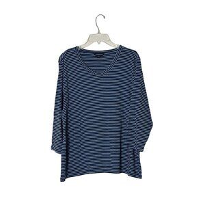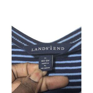 Vintage 90s Land's End Long Sleeve Blue Striped Thermal Tee Shirt Basic Sz 1x