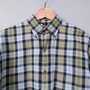 Vintage 90s Lands End Viyella Flannel Button Down Shirt Size M Sage Green Plaid
