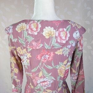 Vintage 90s Large Collar Floral Flowy Hem Blouse Lavender Passports S