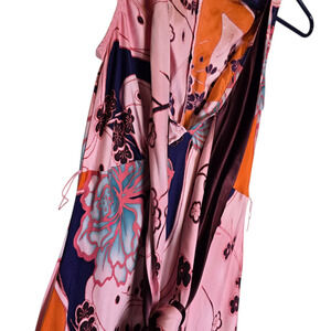 Vintage 90’s Laundry Shelli Segal Asian Floral Silk Dress Convertible Sash Sz 2