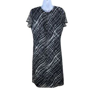 Vintage 90s Layered Slip Dress Size 14 Black White Stripe Midi Party Geometric