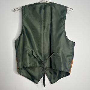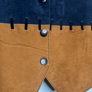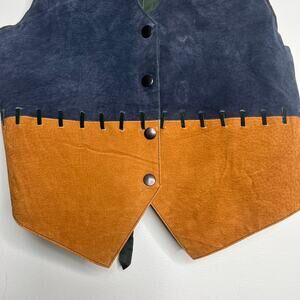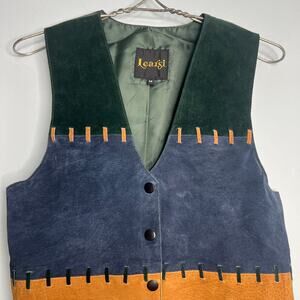 Vintage 90s Learsi Size Medium Green Navy Tan Western Suede Leather Vest Snaps