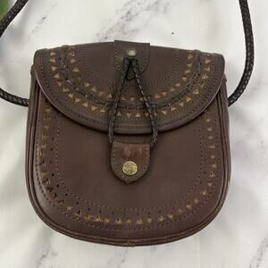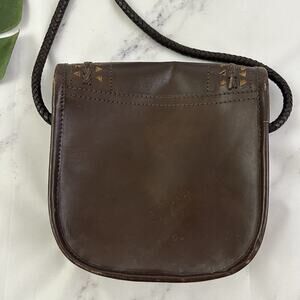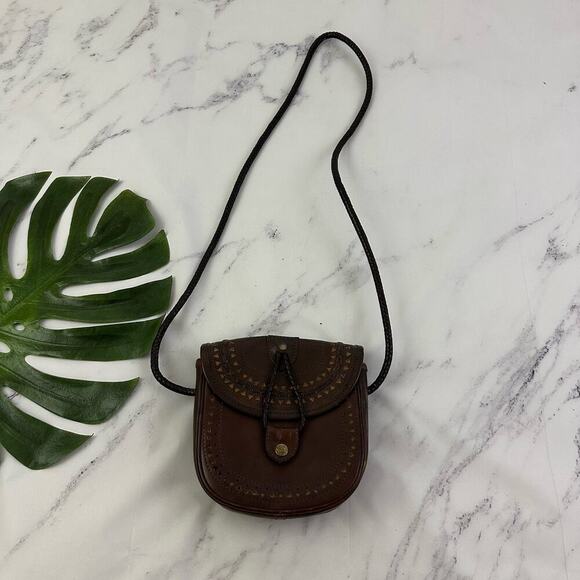 Vintage 90s Leather Cross Body Purse Bag Dark Brown Braided Boho Indie