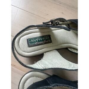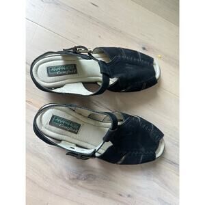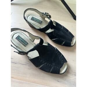 Vintage 90s Leather Hurrache Sandals Size 10 Comfort Suede Black