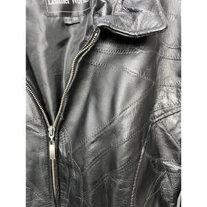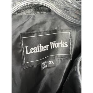 Vintage 90s Leather Works Patchwork Tie Waist Leather Jacket Size 3X Black Lined