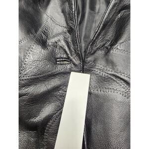 Vintage 90s Leather Works Patchwork Tie Waist Leather Jacket Size M Black Lined Pit to pit 20 in