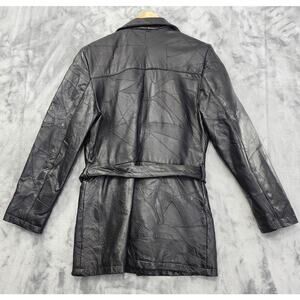 Vintage 90s Leather Works Patchwork Tie Waist Leather Jacket Size M Black Lined