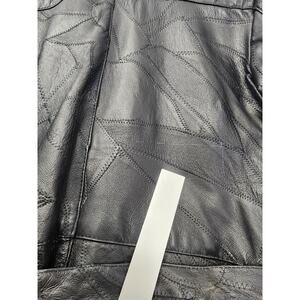 Vintage 90s Leather Works Patchwork Tie Waist Leather Jacket Size M Black Lined Pit to pit 20 in