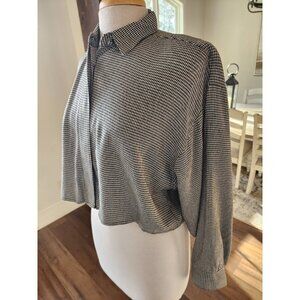 Vintage 90s Leger Mad in USA Houndstooth Cropped Button Down Top