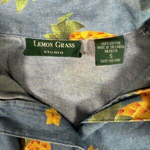 Vintage 90's Lemon Grass Pineapple Denim Button Up Shirt Size Small 100% Cotton