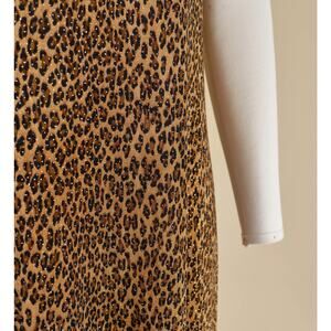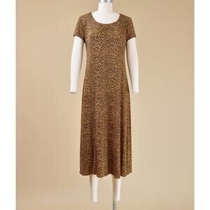 Vintage 90s Leopard Glitter Animal Print Stretchy Knit A-line Midi Dress S M