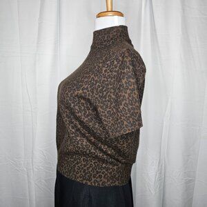 Vintage 90s Leopard Print Mock Neck Short Slv Sweater Brown Nina Leonard Chic PM