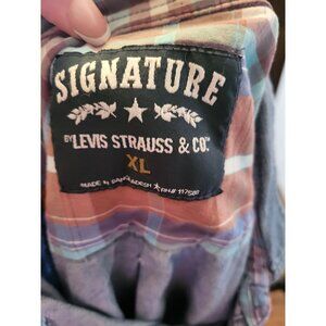 Vintage 90s Levi Strauss Denim Button Up Shirt Plaid XL Western Retro Cottage