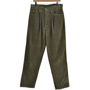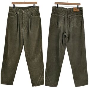 Vintage 90s Levi's 547 Loose Fit Corduroy Pants Pleated Waist Olive Green | 32"