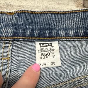 Vintage 90s Levis 550 Mid Wash Blue Mens 32x30 Loose Relaxed Fit Jeans Red Tab