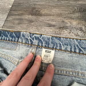Vintage 90s Levis 550 Red Tab Light Wash Blue Mens 38 Relaxed Fit Denim Shorts