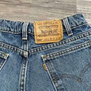 Vintage 90s Levis 560 Women 30 Loose Distressed Jean Cutoff Shorts Jorts Orange Tab USA