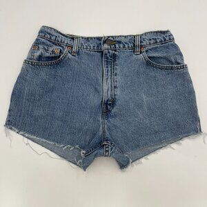 Vintage 90s Levi's Cut-Off Shorts 551 12 Petite Raw Hem Blue 1995 Casual Frayed