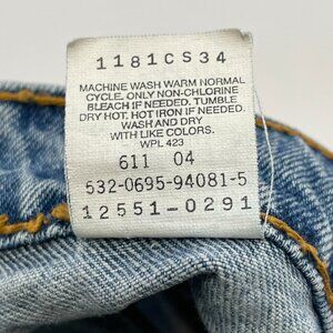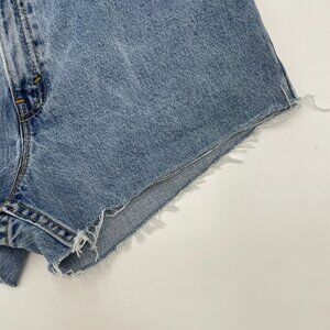 Vintage ‘95 Levi's cut-off 551 jean shorts with frayed raw hem, zipper fly, and 5 pocket styling. 100% Cotton.