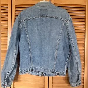 Mid-wash denim with natural fading and character from normal vintage wear. Features the classic Levi’s trucker design with button front closure, chest pockets, and side pockets.