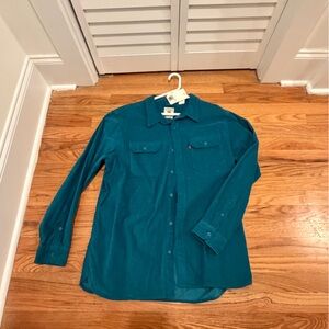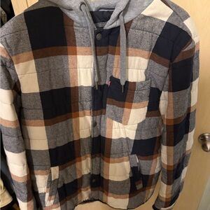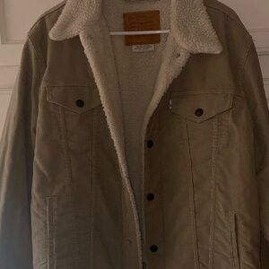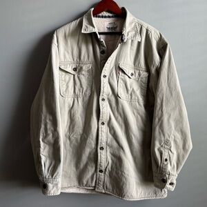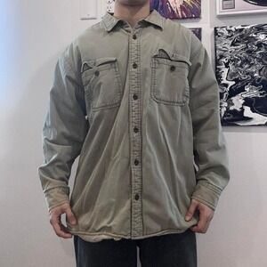 Stains front, arms/cuffs. Thread bare spots back left arm. Thread bare/discoloring collar, pockets, cuffs. Distressed and faded. Made in USA